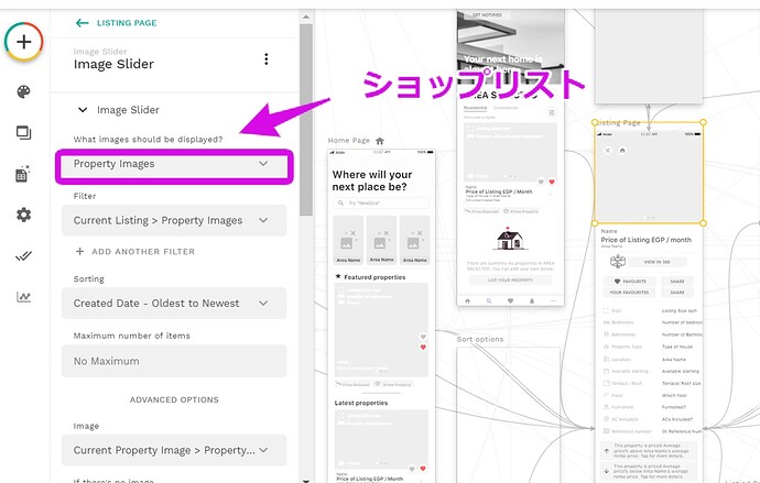 image slider を置いているスクリーンには二つのスクリーンからリンクを張っていますが、両方からCurrentリスト