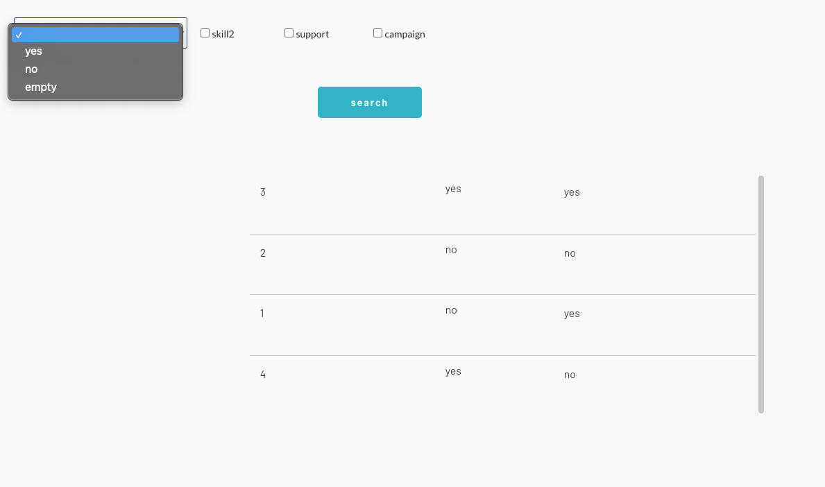 checkboxとdropdownでの選択