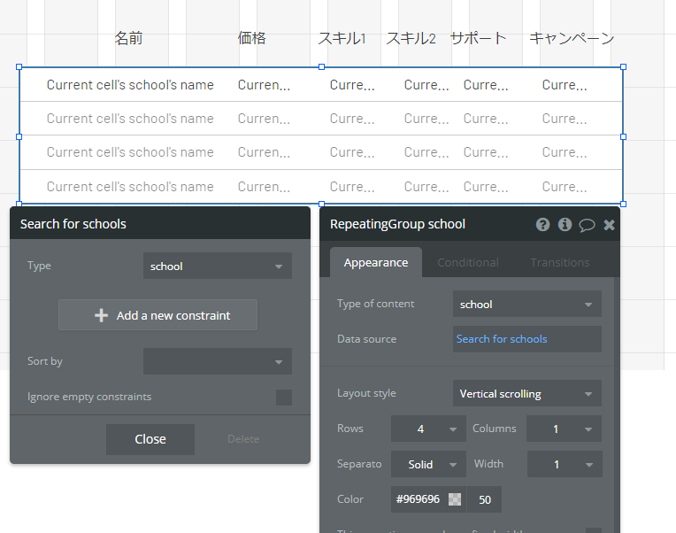 ButtonにRepeatingGroupのDBをsetstateの状態を条件としていれ、Displaylistをおこないます。