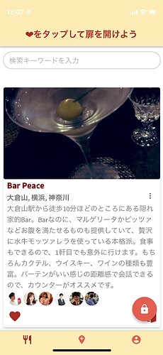 して検索キーワードを含むListデータが現在地から近い順に並ぶというようなことをしたいんですが、検索キーワードを入力すると、データが何も当たらない状態になります。